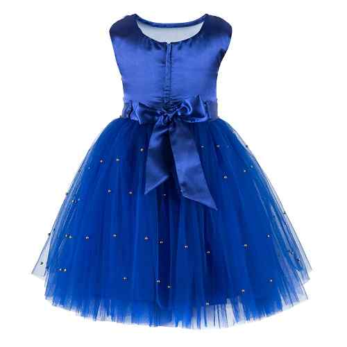 Blue Net Frock With Golden Bow